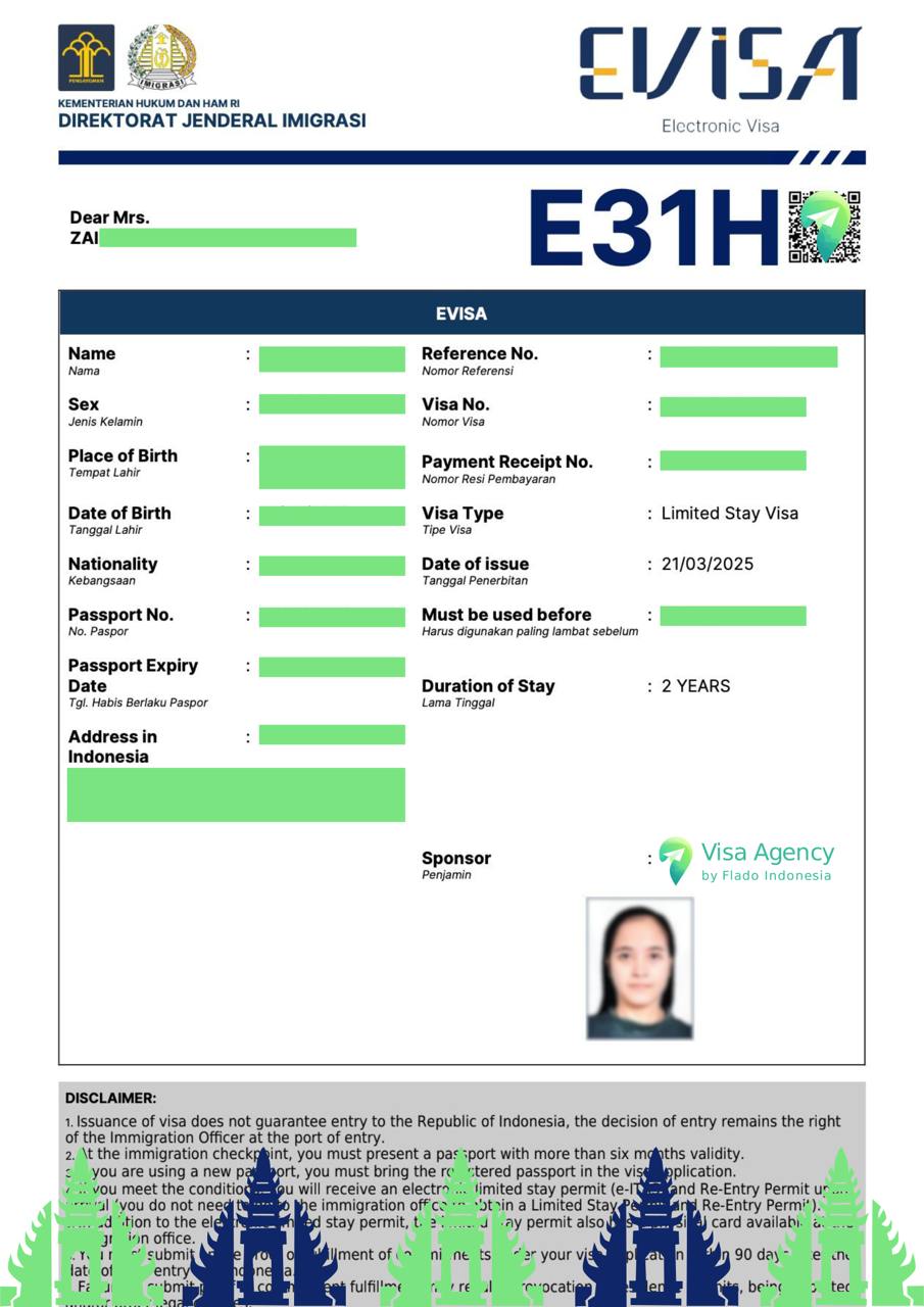 Residence permit in Indonesia is called KITAS/ITAS. This is a permit for multiple stays in Indonesia for a period of 1 year with the possibility of extension up to 5 years.